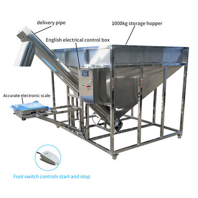 This integrated system combines a custom 304 stainless steel spiral conveyor belt with a 1000kg automatic weighing storage hopper, featuring a high-precision weighing system, conveyor hopper, and elevator for comprehensive material handling solutions.